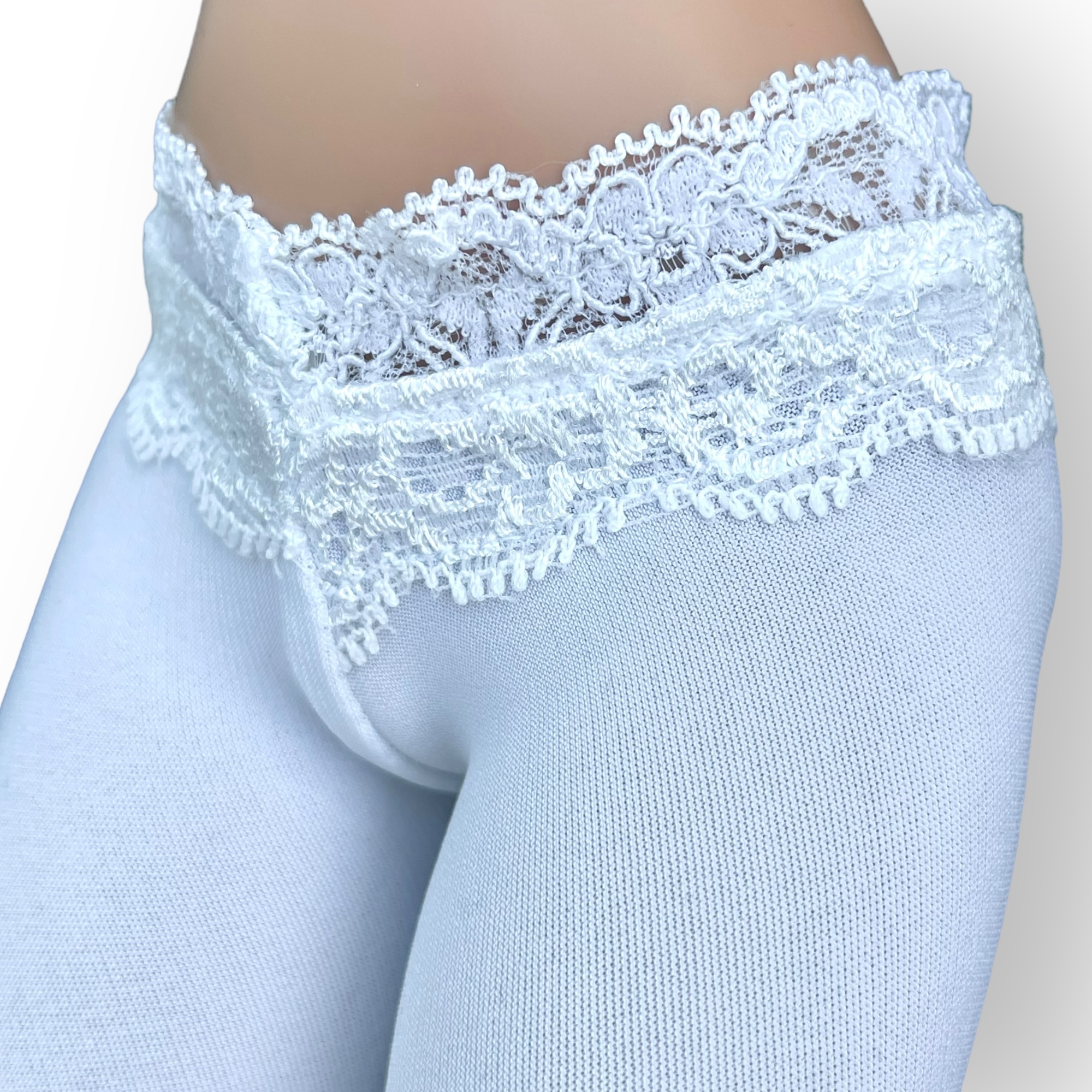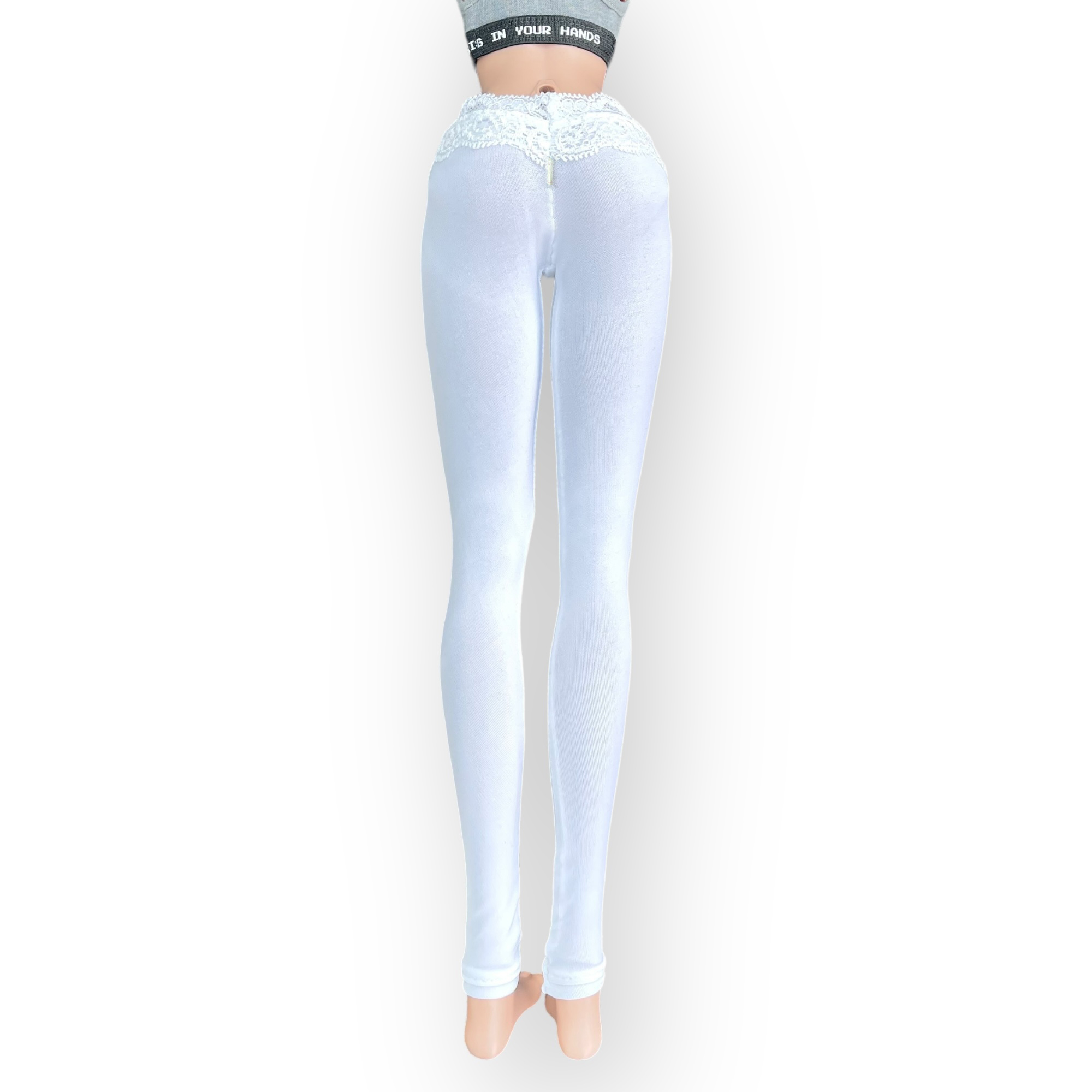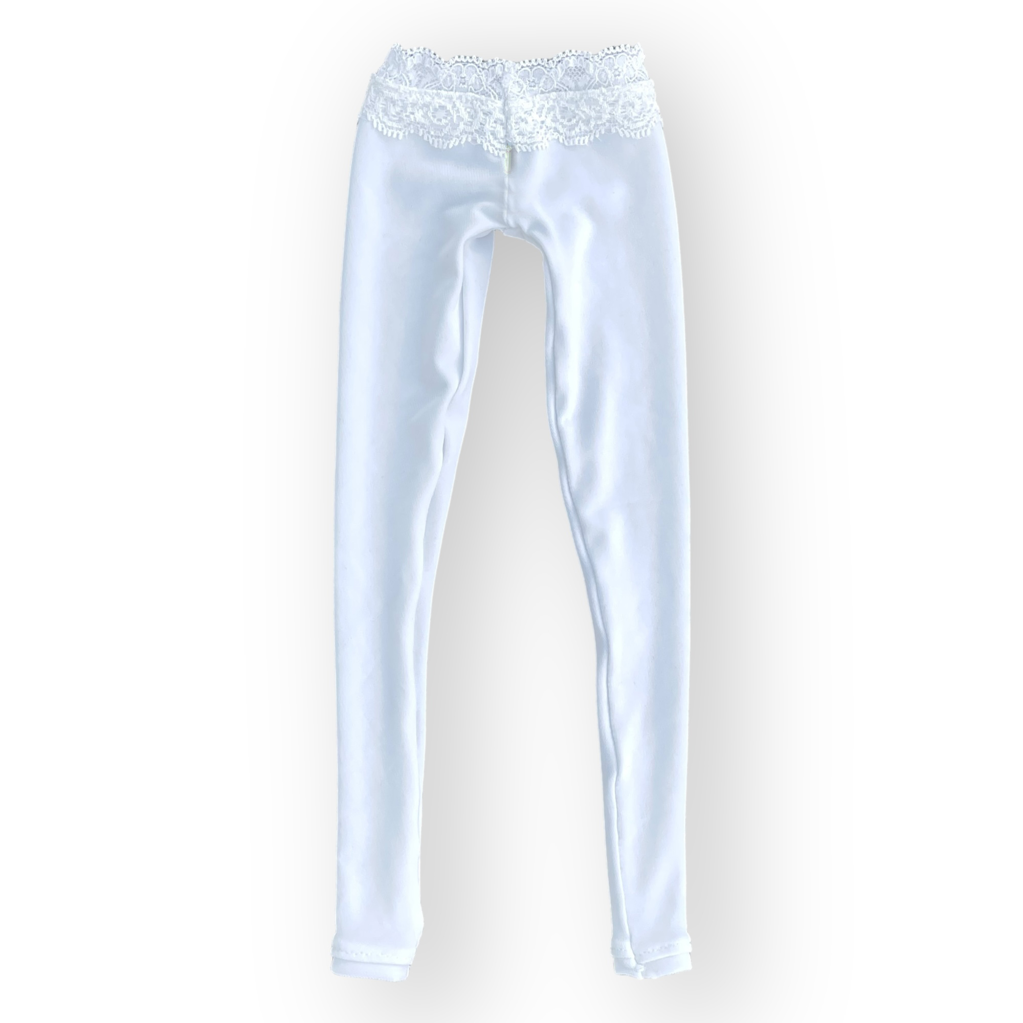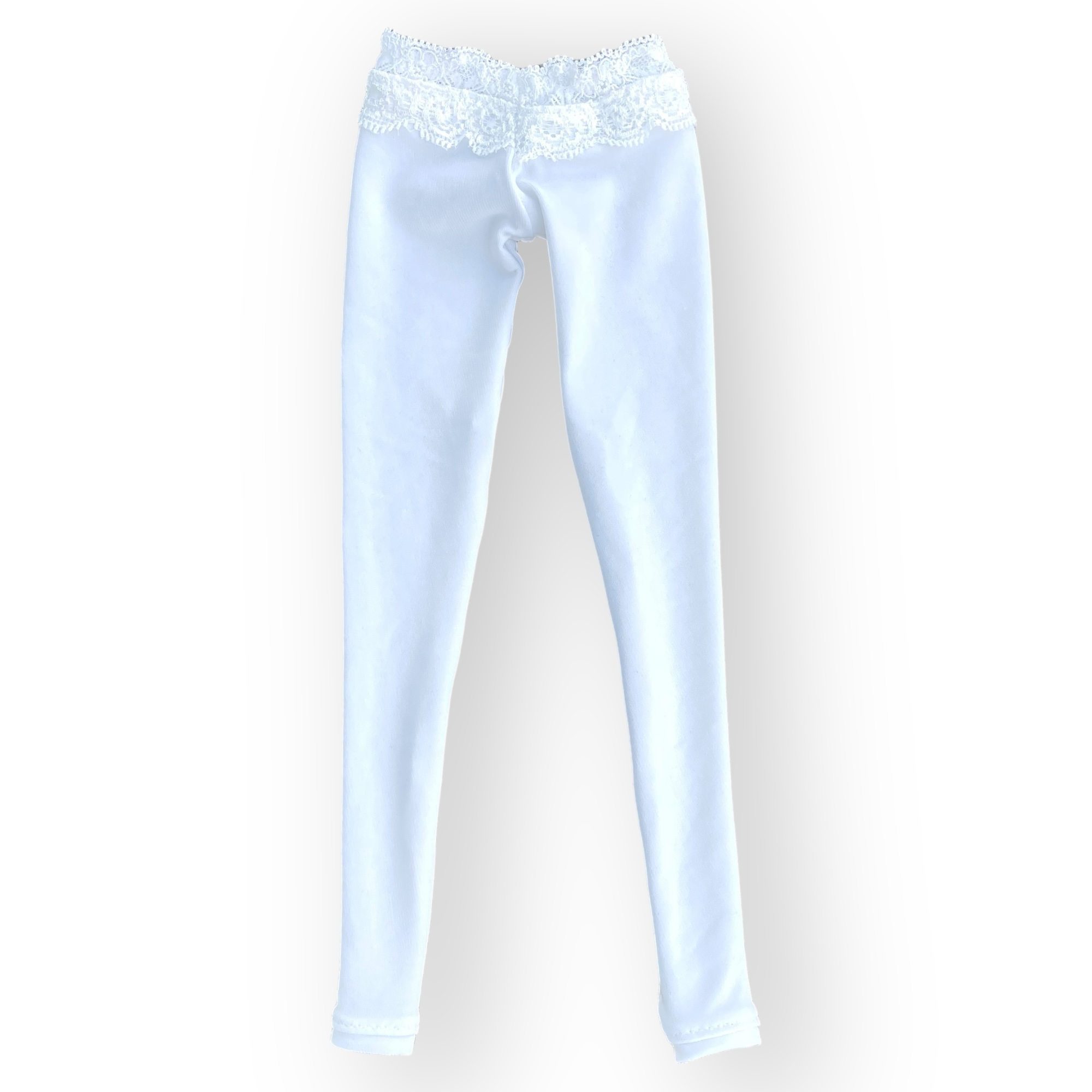 Pretty white stretch leggings with lace detail for standard Smart Doll (jeans to show how they would look underneath, not included).