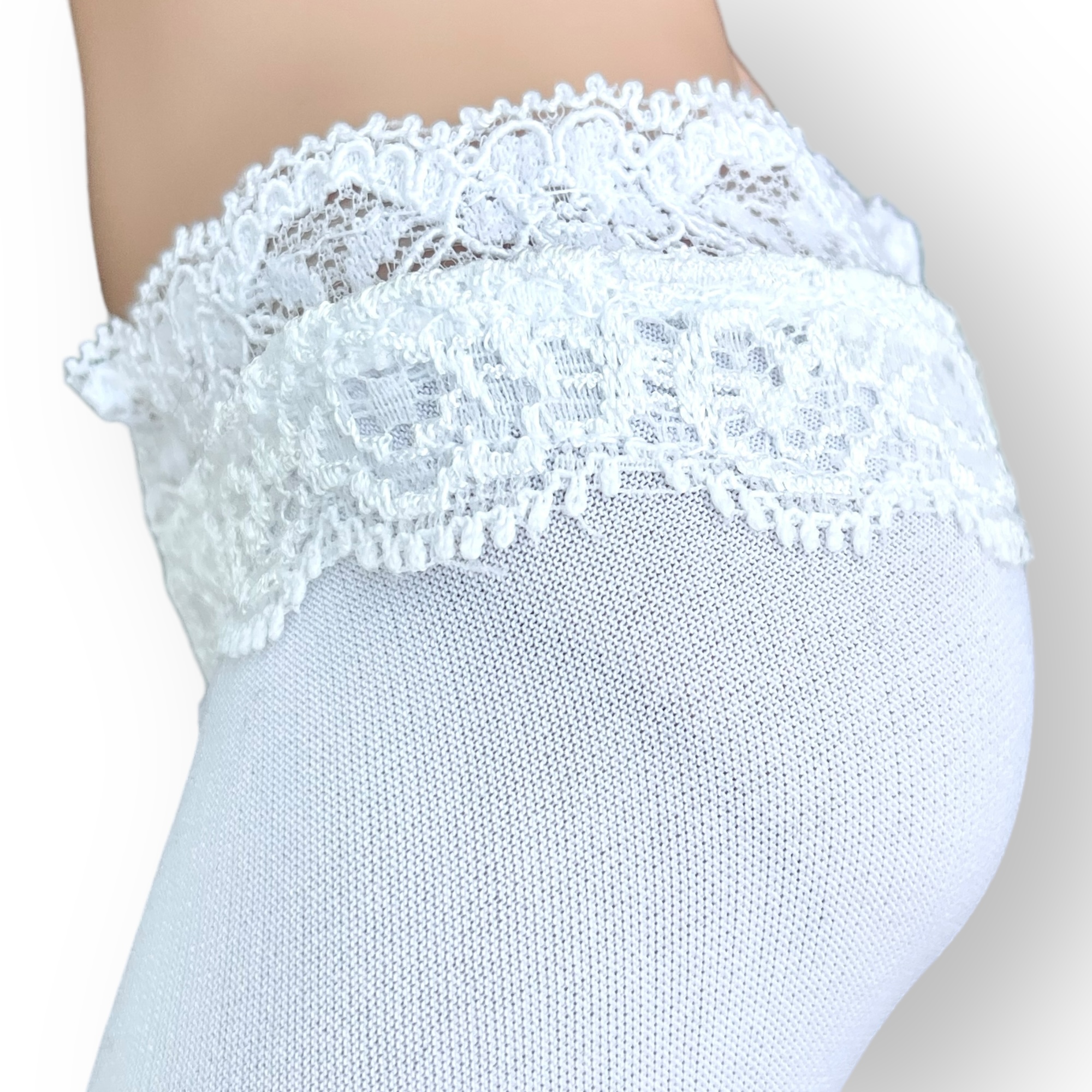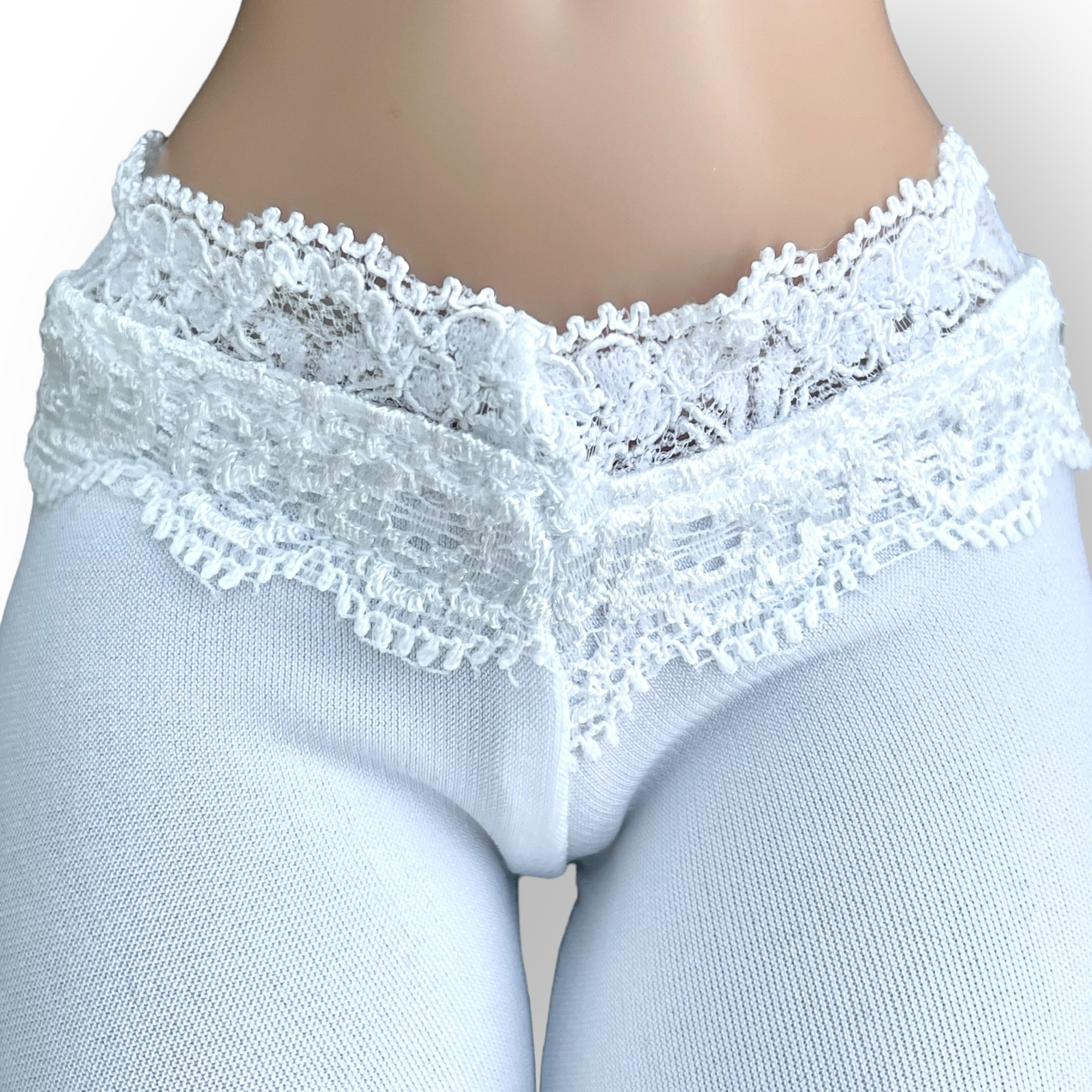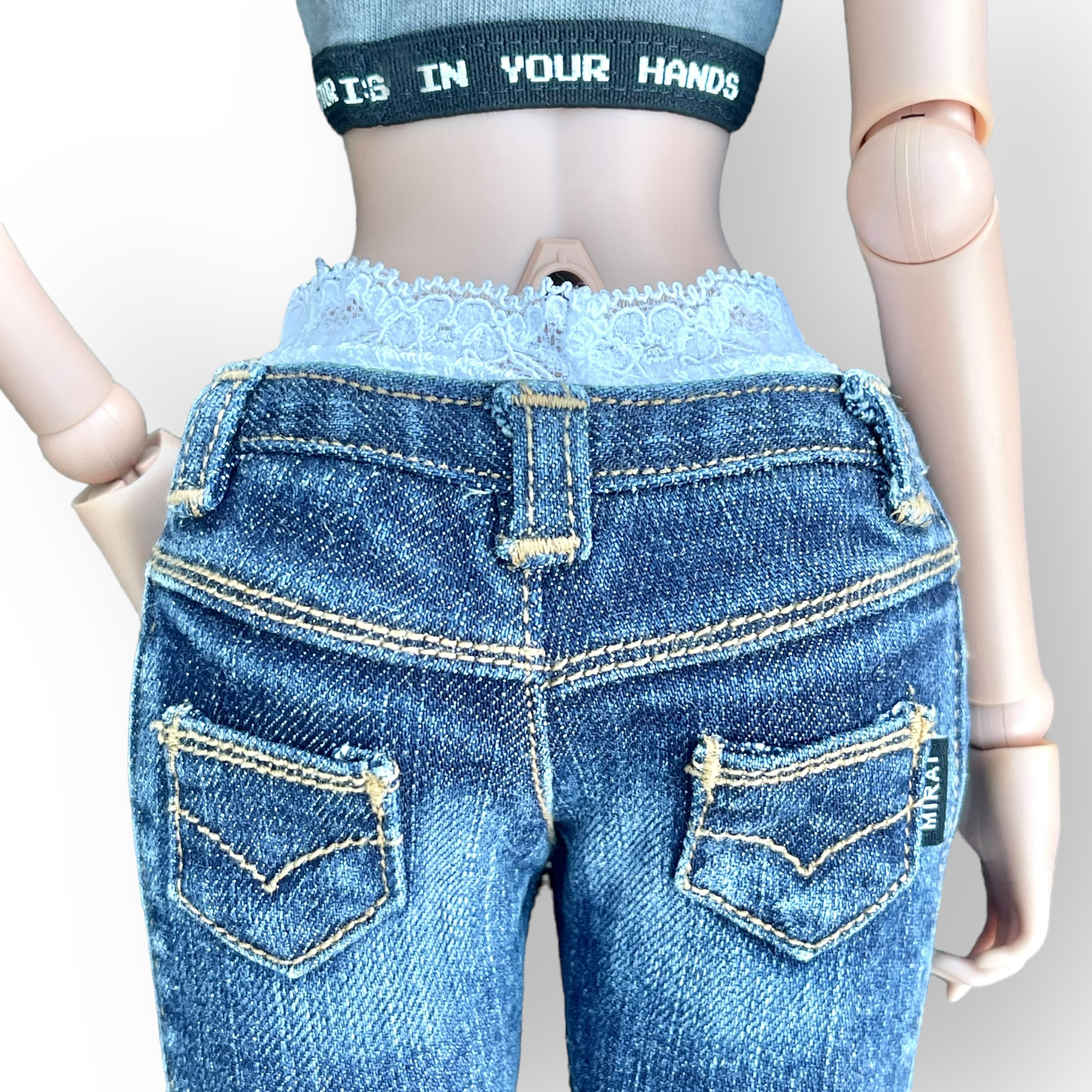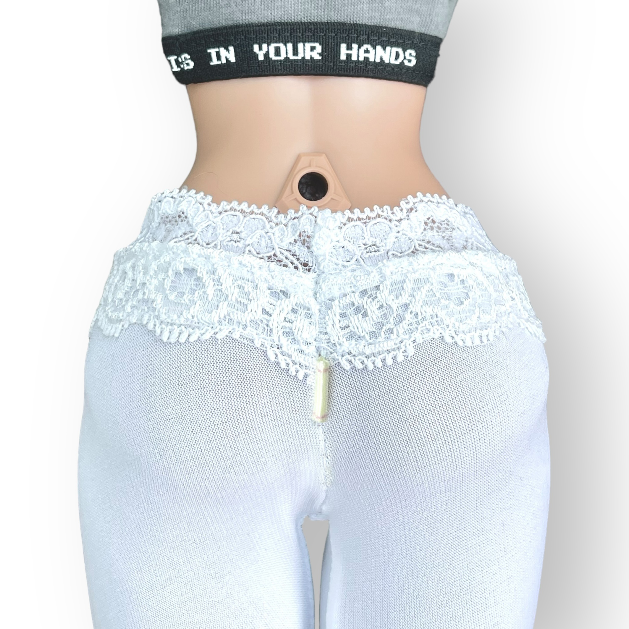 Pretty white stretch leggings with lace detail for standard Smart Doll (jeans to show how they would look underneath, not included).